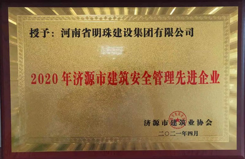 2020年濟源市建筑安全管理先進企業
