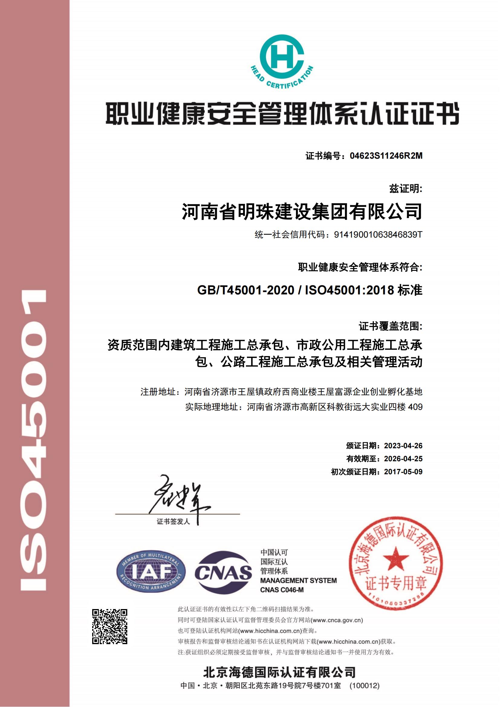 健康體系認證證書