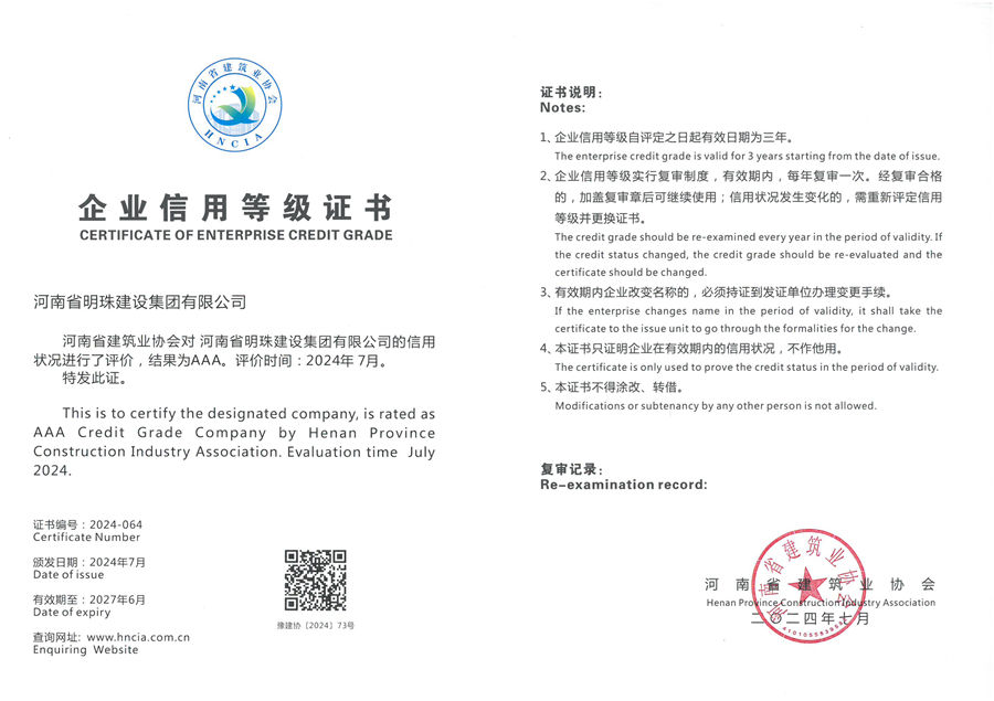 2021年河南省AAA信用等級證書