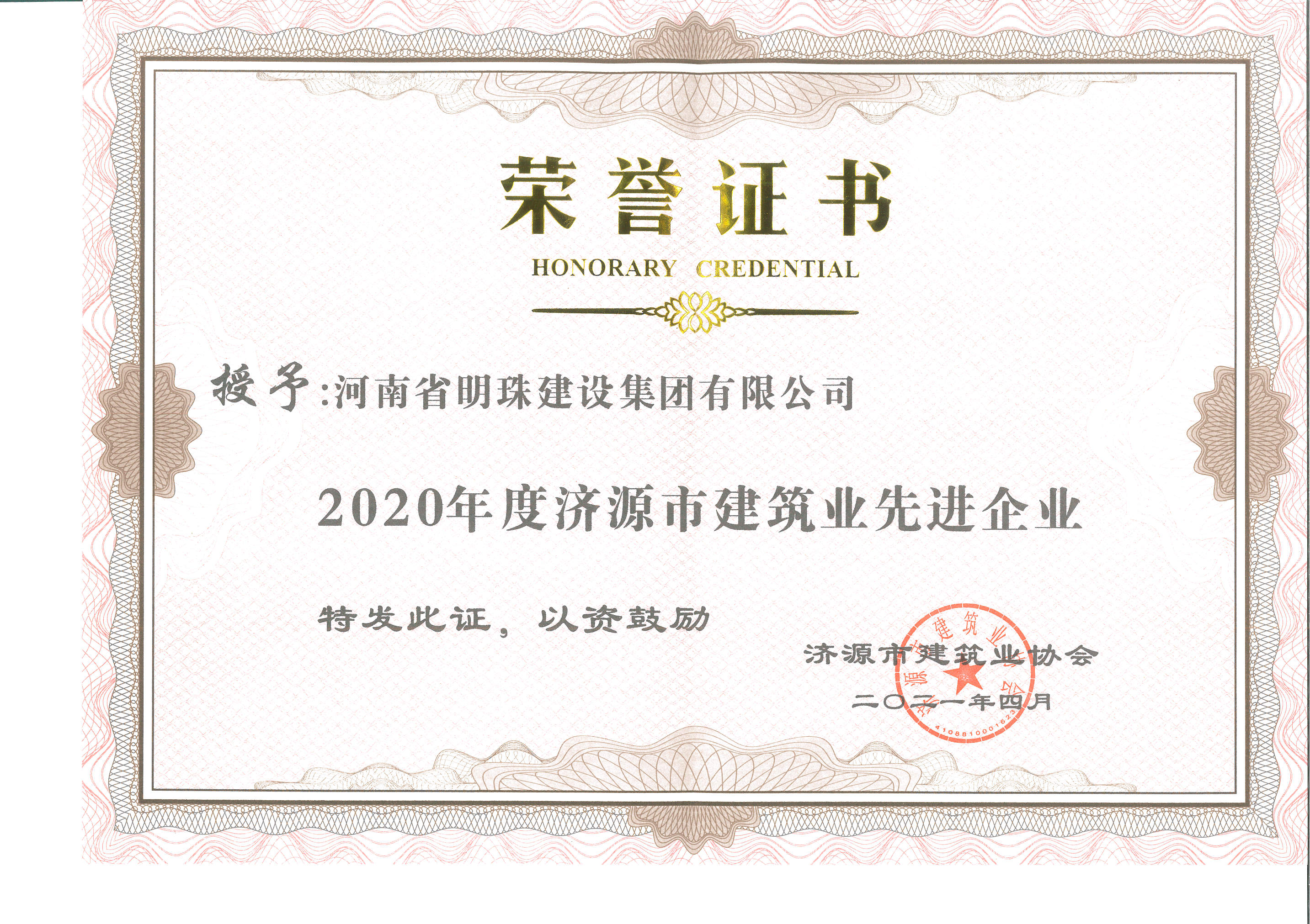 2020年度濟(jì)源市建筑業(yè)先進(jìn)企業(yè)