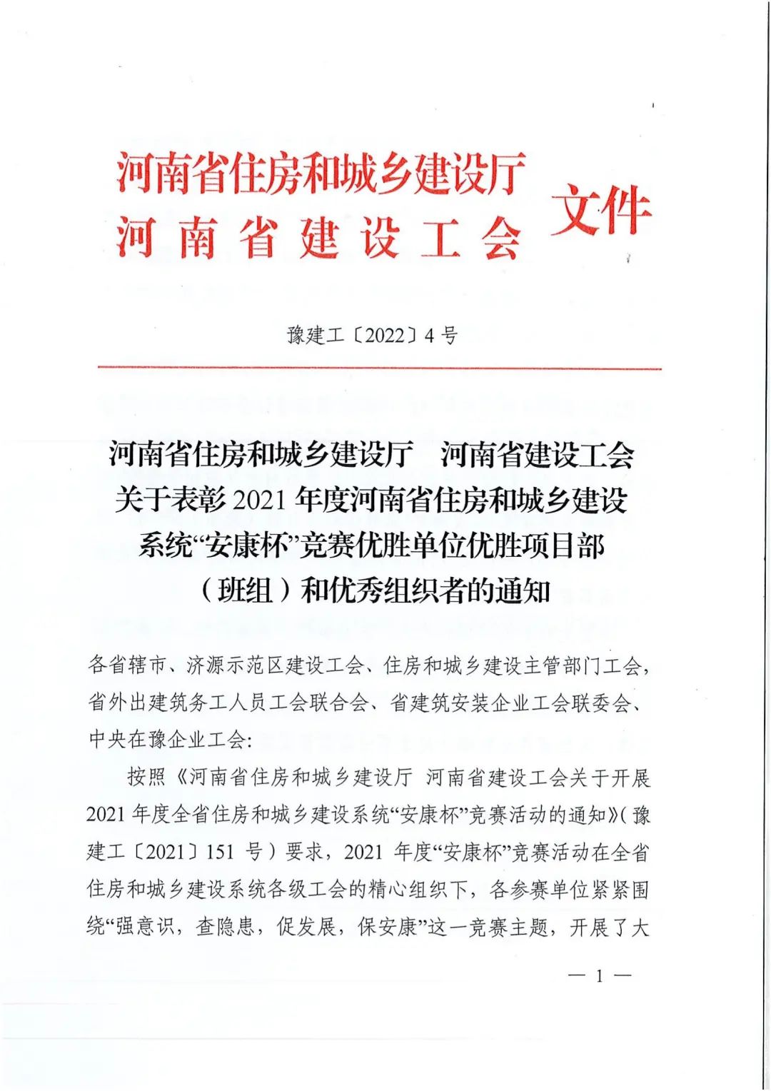 我公司獲得“2021年度河南省住房和城鄉(xiāng)建設(shè)系統(tǒng)‘安康杯’競賽優(yōu)勝單位”這一榮譽(yù)稱號,我們會繼續(xù)發(fā)揚(yáng)成績,再接再厲,扎實(shí)做好安全生產(chǎn)和職業(yè)病防治工作,為全省住房和城鄉(xiāng)建設(shè)事業(yè)高質(zhì)量發(fā)展做出更大貢獻(xiàn)。